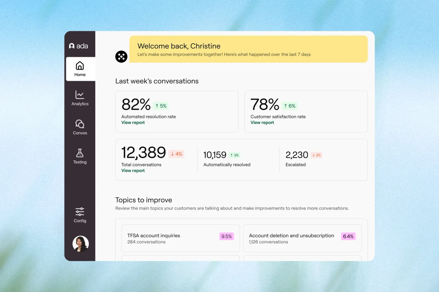 Ada’s unified Reasoning Engine™ replaces stitched-together systems with one, centralized intelligence layer that understands, decides, and acts consistently across every channel.