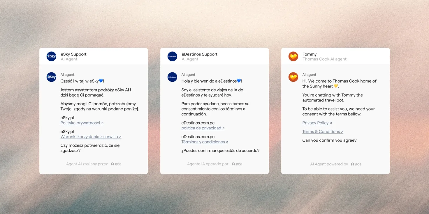 Where personalization matters most, they add control. Instead of forcing a single AI agent to serve every audience, eSky runs a dedicated AI agent for each brand. That decision allows each experience to reflect the nuances of its market without compromise. And it doesn’t add operational overhead. With Ada, all three AI agents are managed from a single platform, with a unified view of performance across brands.