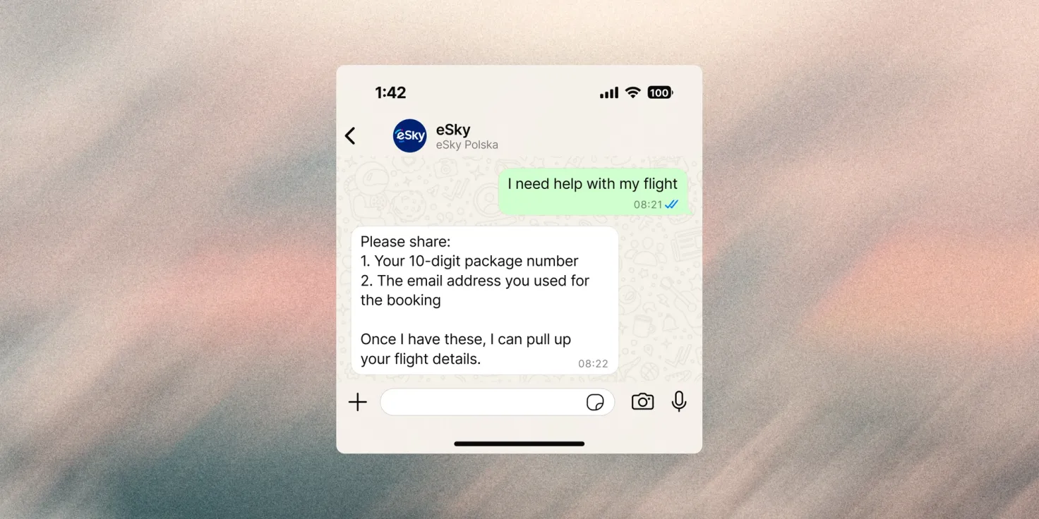 And it makes sense. WhatsApp is a familiar channel for eSky’s European and Latin American customer base, offering a persistent thread that anxious travelers can return to, revisit, and rely on. It was also a natural extension of how eSky already operates. The team has always focused on chat as a format, not just a channel, and WhatsApp mirrors a similar conversational dynamic.