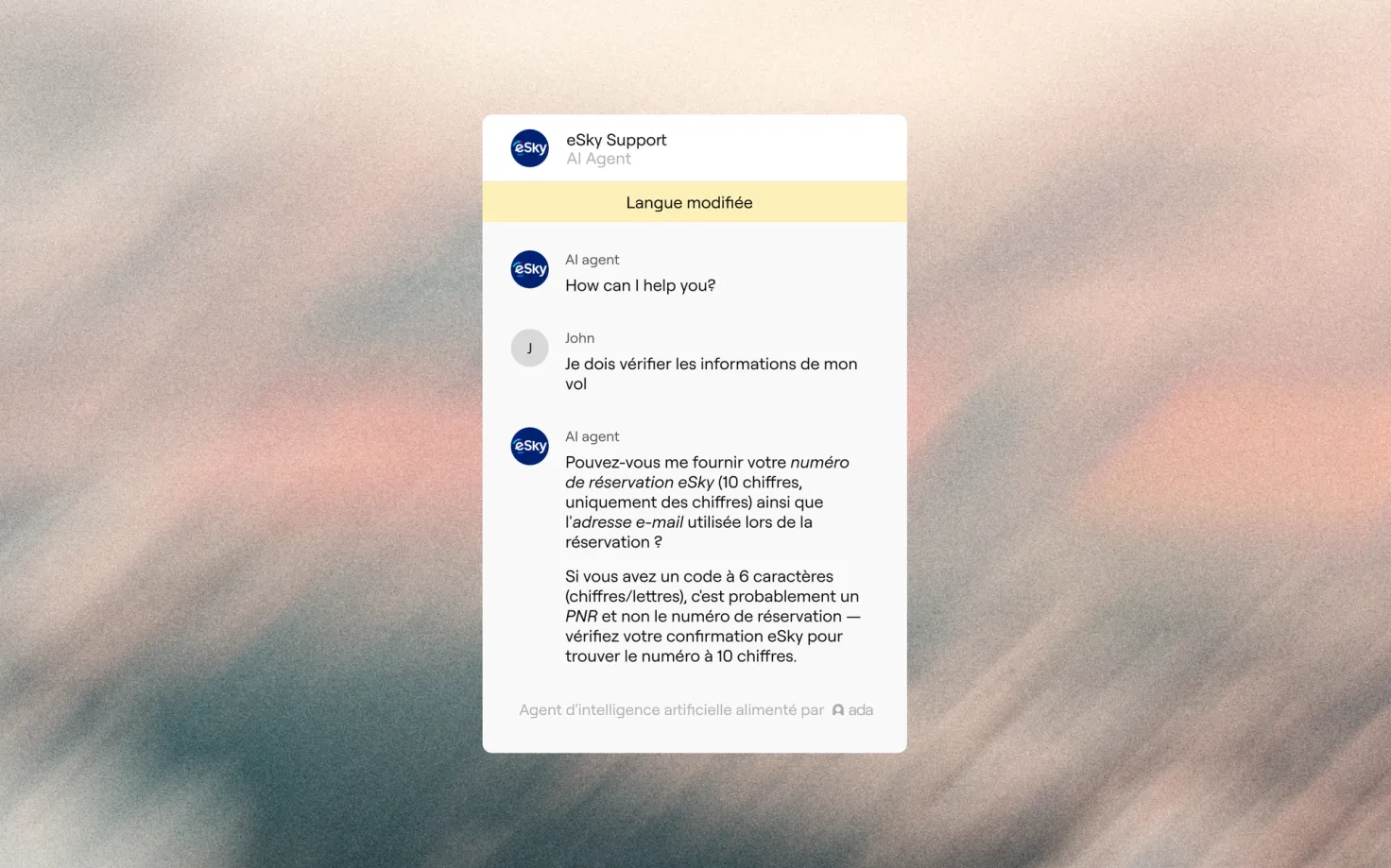 eSky centralizes its knowledge base in a single language, English. This keeps content easy to maintain, while Ada’s multilingual capabilities translate each experience in real time based on customer preference. As the team puts it, “we just flip the language, and Ada does the job.”