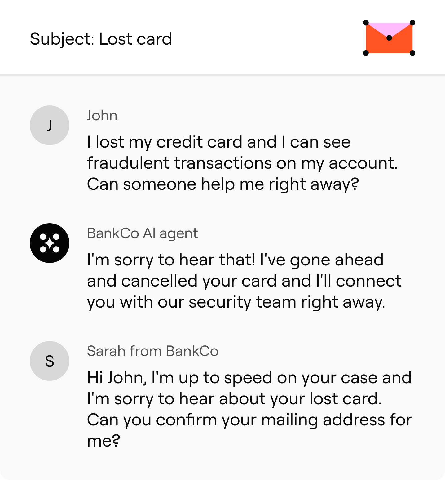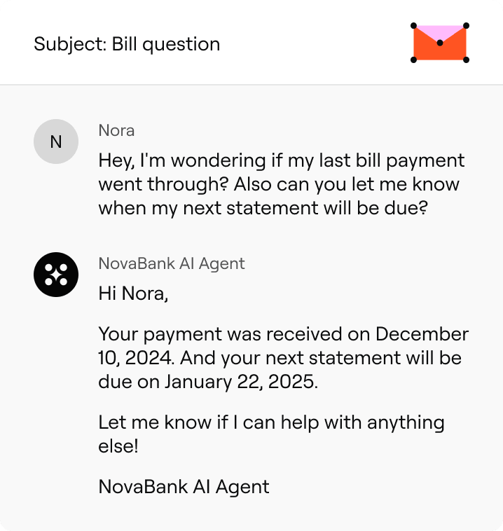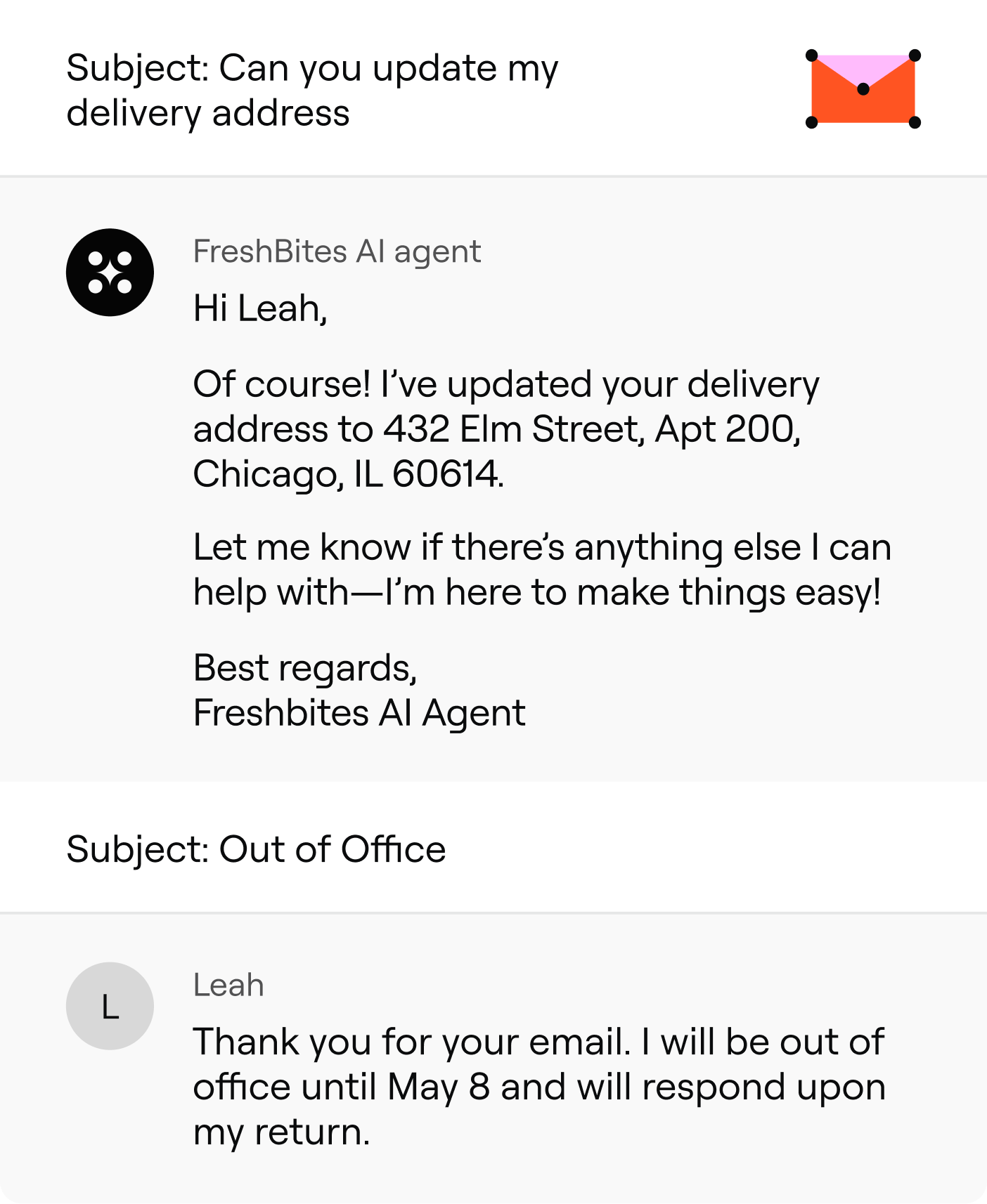 Customers rarely ask just one thing. Your AI agent understands and resolves multiple questions in a single email, reducing back-and-forth and speeding up resolution.