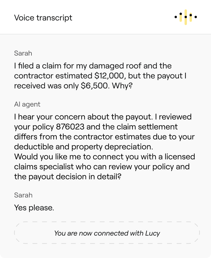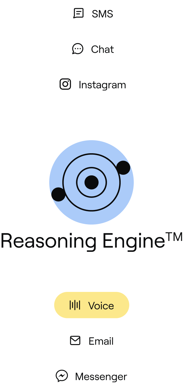 Resolve complex, multi-step interactions end-to-end, applying your policies, retrieving live data, and delivering consistent outcomes without relying on rigid scripts.